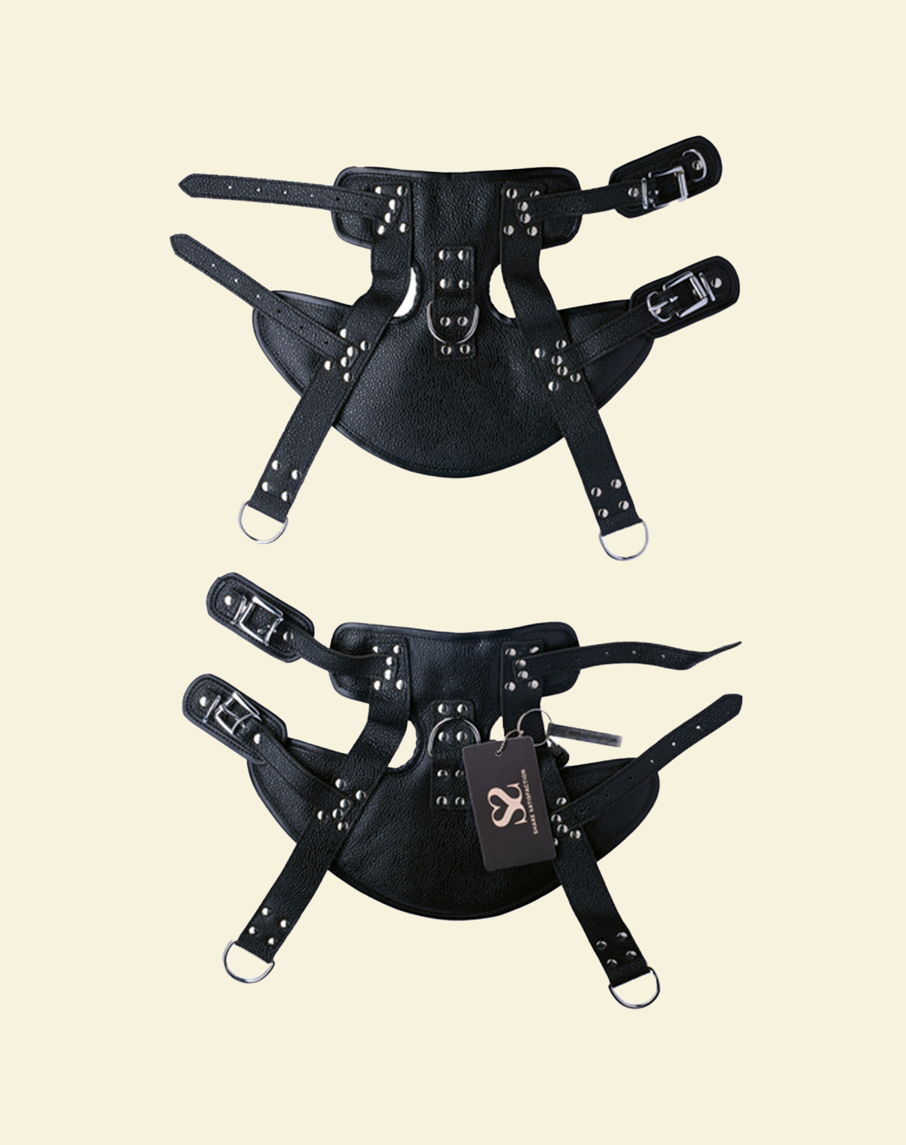 The Bound X Leather Suspension Ankle Cuffs by Share Satisfaction are premium-grade restraints designed for advanced bondage and suspension play. Padded for comfort and crafted with heavy-duty hardware, these cuffs provide both security and indulgent restraint when the stakes (and legs) are high.