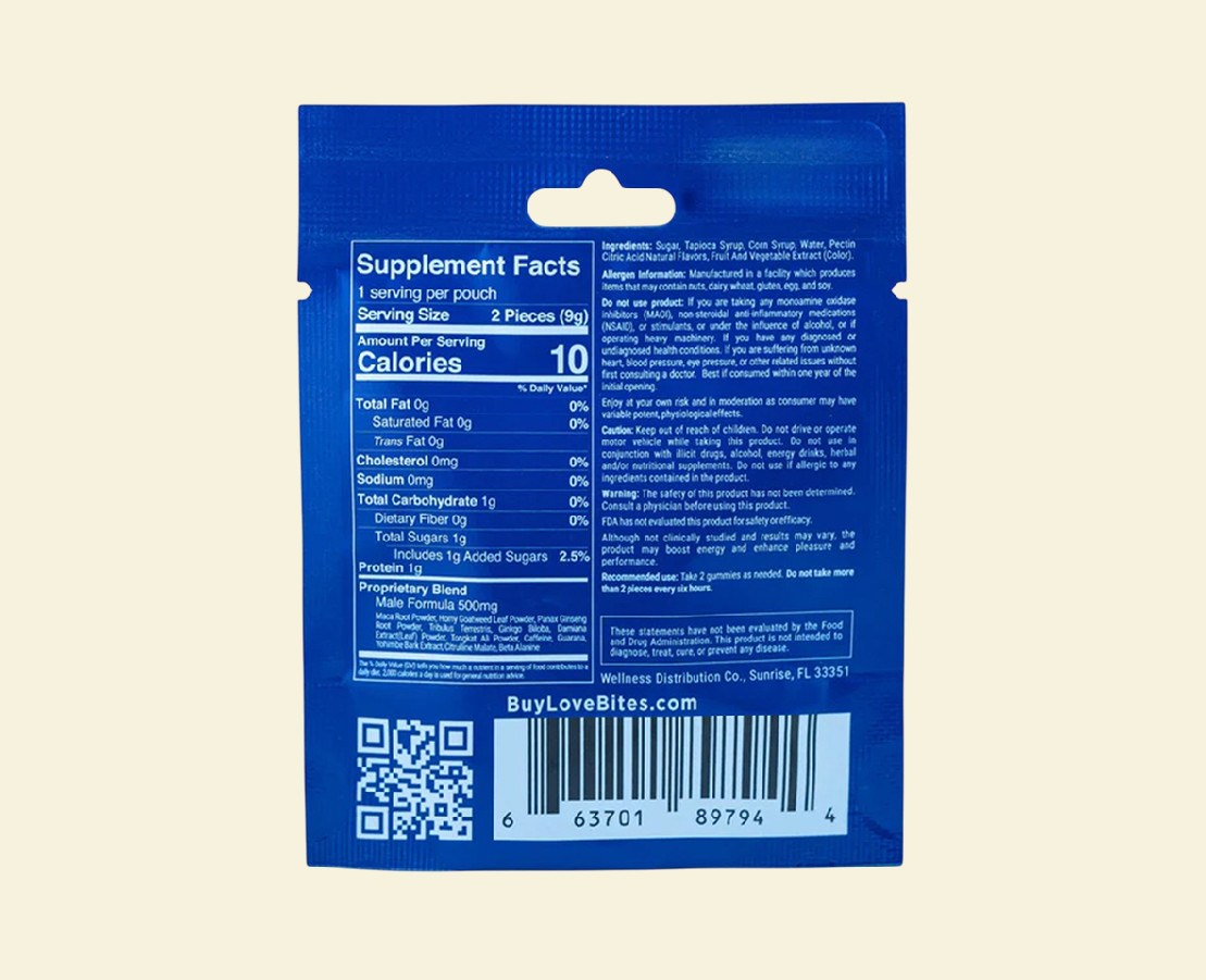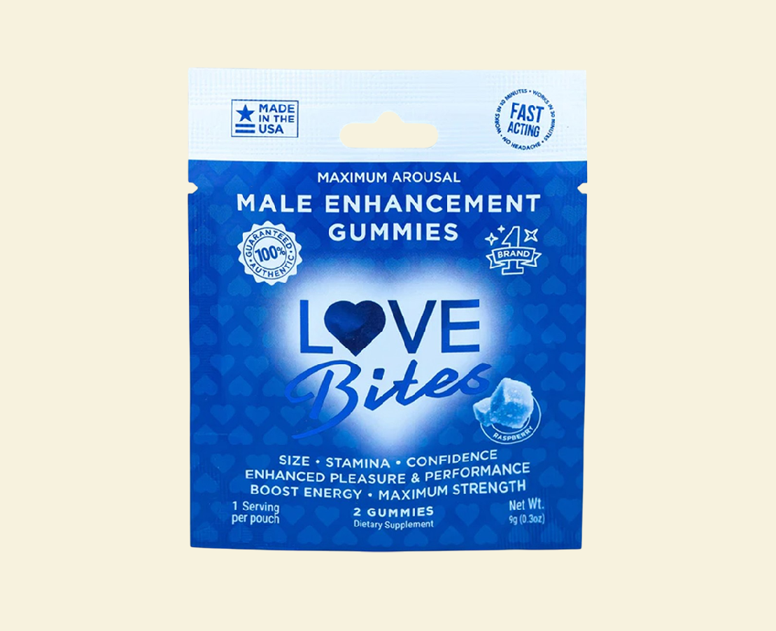 Love Bites is the male enhancement gummy to keep them satisfied and coming back for more. Stop racing the clock in the bedroom, burning yourself out, and falling asleep early. The person in your life wants a man who can stand tall and give them all of the attention they deserve. With Love Bites Male Enhancement Gummies, you’ll have a firm, rigid command of the bedroom, bringing back fire and passion that lasts all night long.