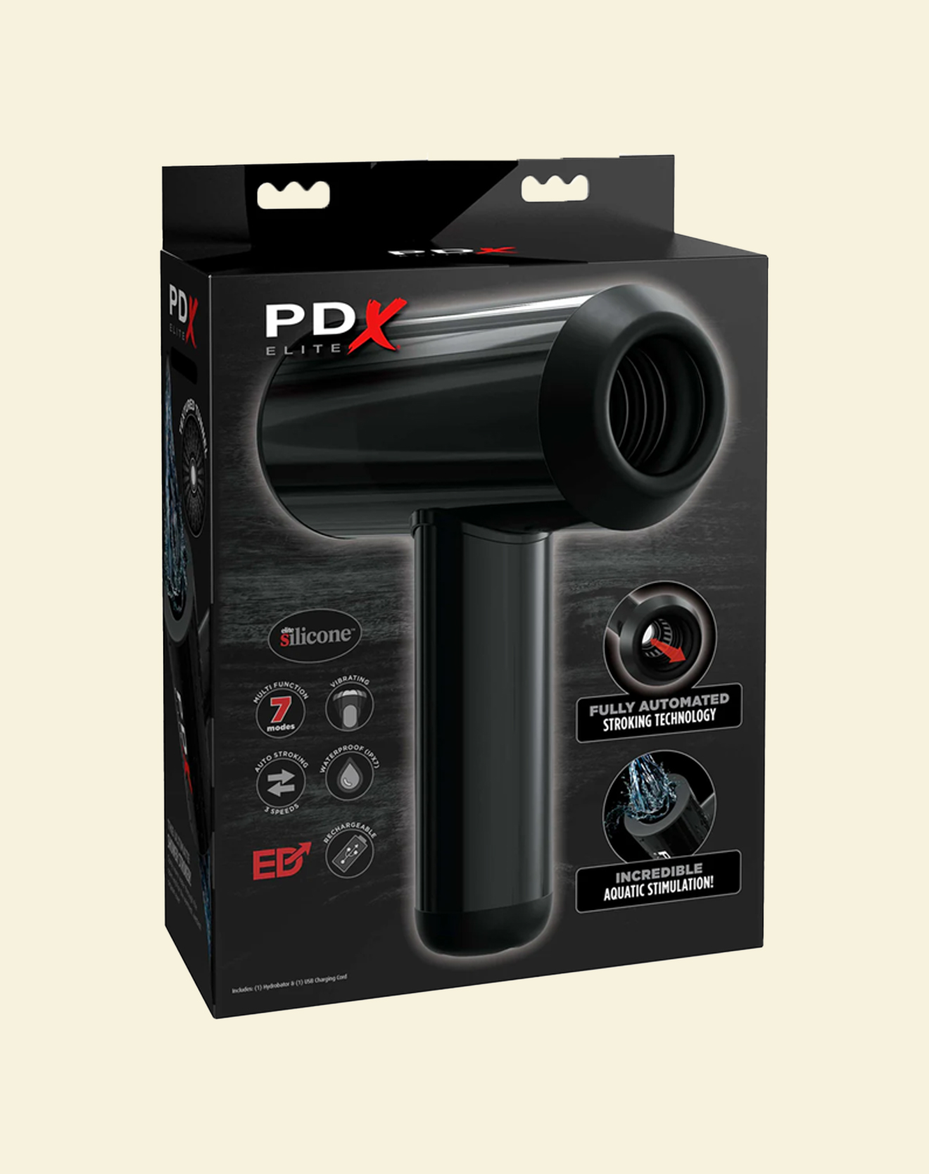 The PDX ELITE® Hydrobator is made for incredible aquatic stimulation with its innovative double-open-ended design, allowing water to flow through the tunnel while simultaneous automated stroking technology gives you a fully-encompassing stroking experience. Created with a hollow tunnel to fit any length shaft, the Hydrobator’s accessible shape allows for wet or dry automated stroking and vibration making it perfect for shower masturbation sessions! The internal tunnel is lined with supple Elite Silicone and is ribbed and textured for extra stimulation.